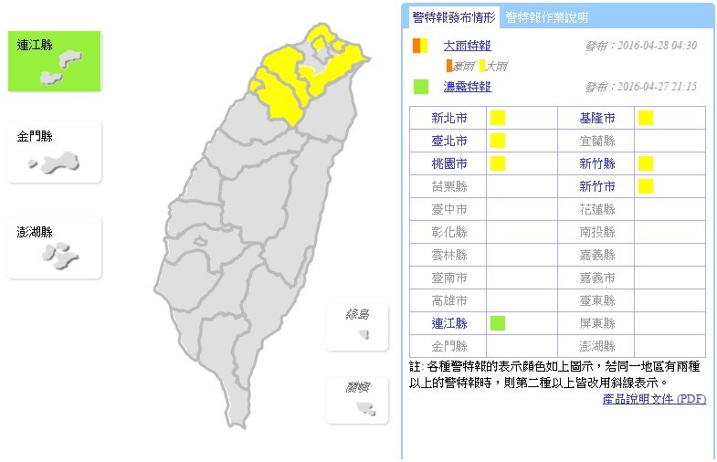 中央氣象局28日凌晨4時半發布大雨特報,指對流雲系發展旺盛影響,易有短時強降雨,28日新竹及桃園地區、基隆北海岸、台北及新北山區有局部大雨發生的機率,請注意瞬間大雨、雷擊及強陣風。
