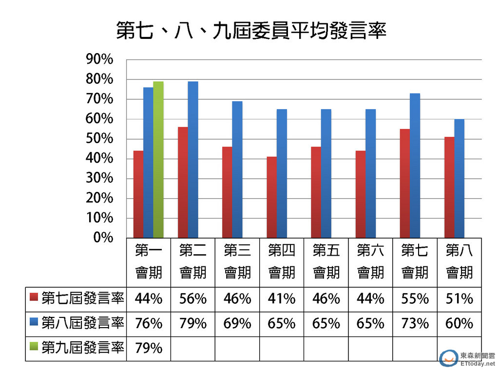 ▲立法院第七、八、九屆委員平均發言率。(圖/公督盟提供)