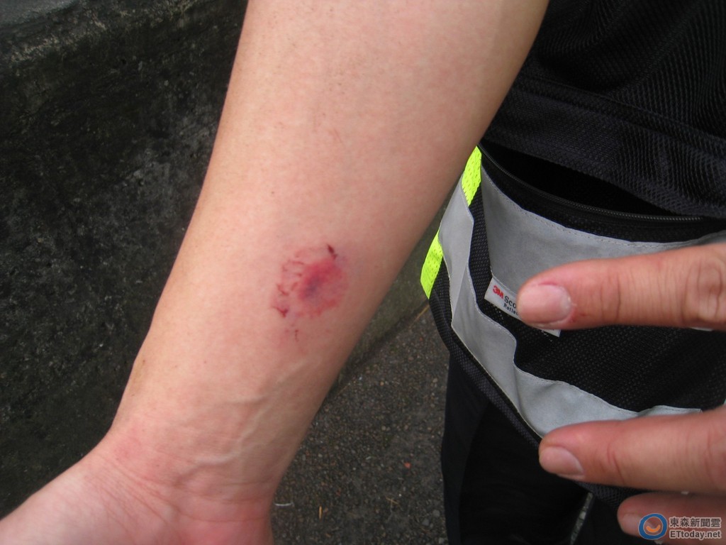 員警壓制過程中,黃姓男子仍頑強反抗並咬傷員警,但為避免黃姓男子再次衝到車道,員警仍忍痛持續肢體約束,直至救護車到場會同消防隊員架上擔架,再由小隊長一路陪伴護送至台北新光醫院就醫。