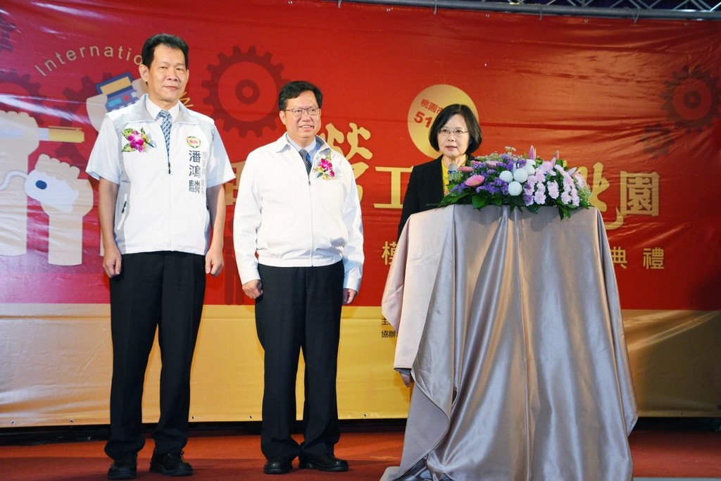 蔡英文28日在桃園市長鄭文燦、立委鄭寶清、準行政院政務委員林萬億陪同下,出席桃園市105年勞動節模範勞工表揚禮讚活動,她提到,所有勞工都是社會的基石,也是經濟繁榮、進步的推手,因此,除了表揚以外,政府應該做的是保障勞動權益,當勞工朋友的強力後盾。