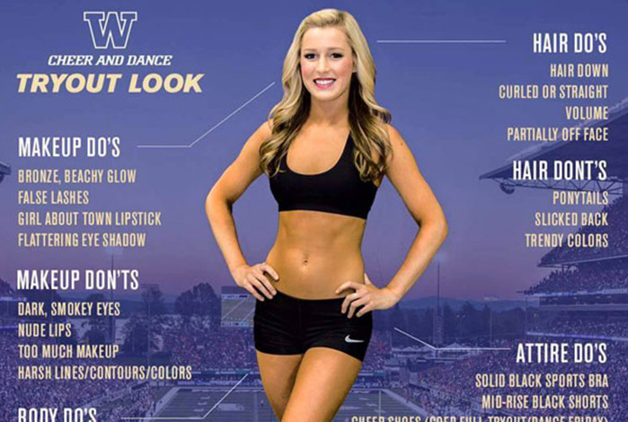 性別歧視?美國華盛頓大學(University of Washington)日前公布一張「啦啦隊員甄選指南」,並詳述該校啦啦隊應該具備的各種條件。但因為「太過表面化」,一曝光就引發各界撻伐,還有人生氣地說,學校縱容甄選指南物化女性,非常膚淺。