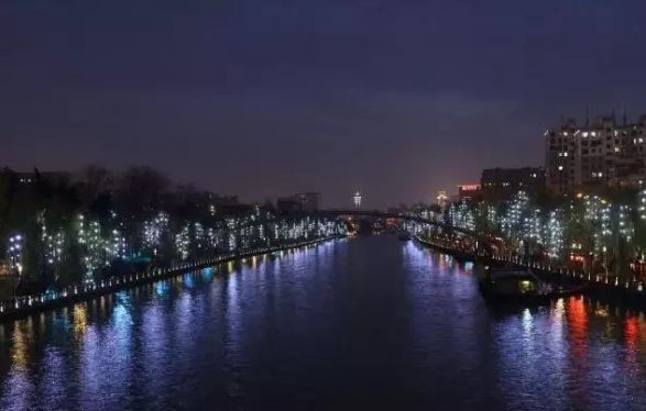 運河沿線:在恢復2008年亮燈效果基礎上,對兩岸建築、堤岸、綠帶、橋樑進行節點和效果的提升,重現「水墨丹青」的效果。其中點光源和燈籠使用較多,以點串線,打造漁火點點的江橋暮雨等景象,反映沿岸百姓生活。