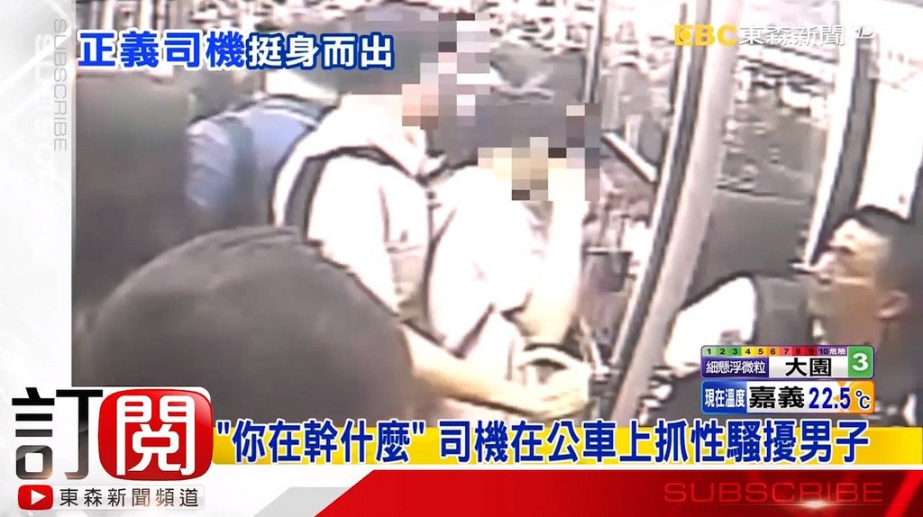 周柏輝觀察後發現不對勁,立刻拍沈男的右肩「你在幹什麼」,聽到對方說「沒有」,繼續喝斥「你在磨蹭什麼,亂七八糟,我直接報警,叫警察過來抓你!搭公車這樣搭的喔?你在性騷擾嗎?」