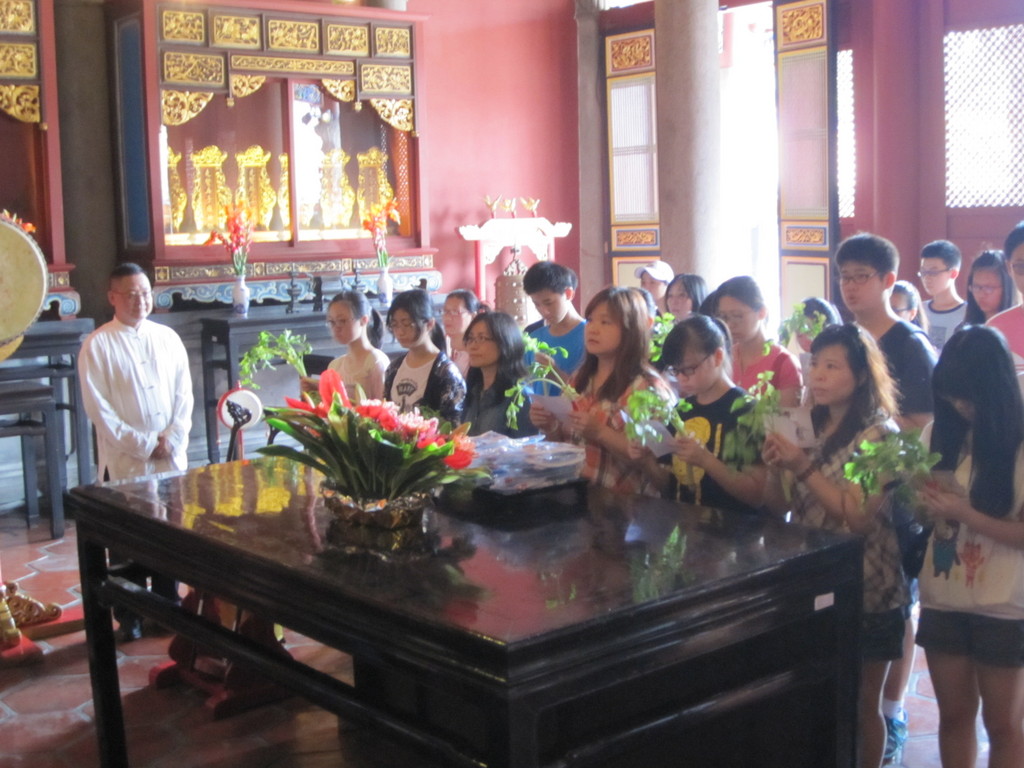 據了解,活動將在鐘鼓齊鳴的聲響下展開,參加者於禮門盥洗後,由資深禮生引領考生「採芹繞泮池」,巡禮制動線經櫺星門、儀門入大成殿,禮敬孔子,齊念祝禱文敬稟,供桌上則準備象徵文思泉湧的礦泉水、包中的粽子、勤學的芹菜等供品;再由禮生福贈考生金榜題名文具組,象徵「夫子賜福」。接著,考生至崇聖祠、東廡、西廡等殿宇禮敬先賢先儒,行「巡香祈福禮」後,再於儀門廊下的祈願樹高掛祈願書籤,藉由莊嚴肅穆登科及第祝告儀式,效法先賢先儒,勤勉向學。