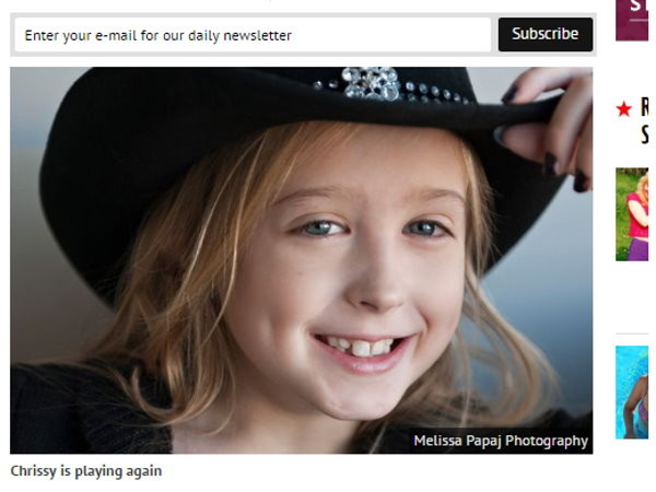 乳癌是奪走不少女性生命的重大疾病,沒想到現在發生在一個8歲的小女童身上。美國猶他州(Utah)的8歲女童克莉絲(Chrissy Turner),去年10月被醫師診斷出罹患乳癌,最後經過院方的評估和觀察之後,決定切除乳房。克莉絲手術之後也逐漸恢復健康。