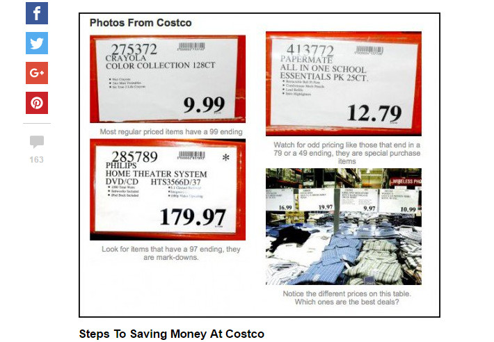 據號稱「好市多爆料者」(Costco Whisperer)的美國內部資深員工爆料,在好市多的價格標籤上,只要看到右上角有標上星號「*」,即代表此商品快賣完了,若同時看到價格尾數「.97」加上星號「*」,那請記得趕快下手,因日後好市多將不會再銷售同類商品。