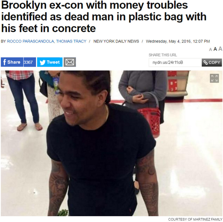 ▲馬丁納茲遭黑幫殘忍殺害,丟入河底棄屍。(圖/翻攝自《紐約每日新聞》)