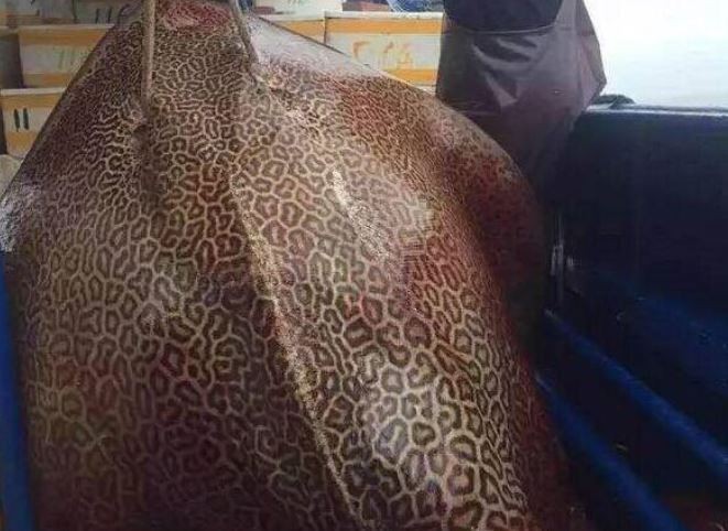 ▲漁民捕獲150公斤重「毒怪」,渾身布滿性感豹紋。(圖/翻攝自網路)