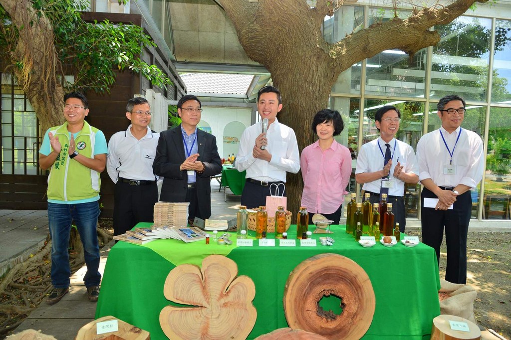 「生活中的樹」生態展在新竹市首度舉辦,邀請行政院農委會林業試驗所與國立自然科學博物館的專業參與,將深度的樹知識以趣味平易的方式呈現,上午的開幕記者會,林智堅市長代表接受由林業試驗所黃裕星所長特別準備了《樹木風險評估》書冊贈予新竹市的學校,林智堅市長現場用手機透過光學裝置微距觀看樹木年輪,覺得相當有趣又有意義。他也現場感受台灣原生樹木精油的好味道,並與來賓享用茶樹油製作的糕點,品嘗純正的台灣味道。