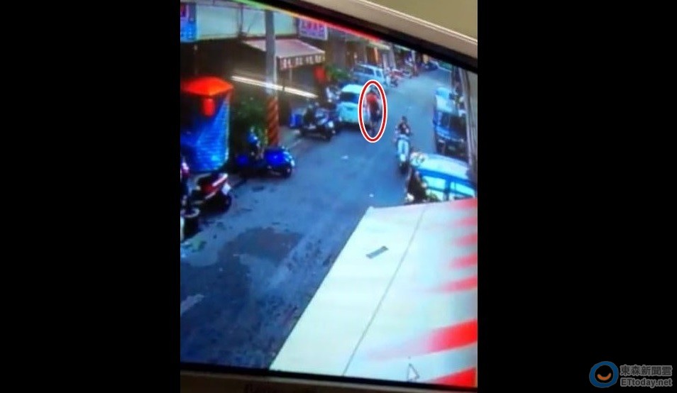 ▼台新銀行搶案歹徒身穿紅色上衣、藍色短褲,手上還拿著黑色手提包。(圖/記者莊智勝攝)