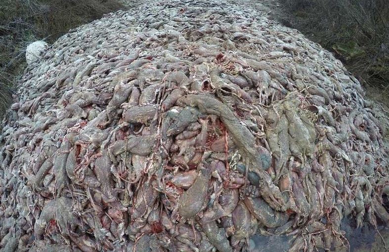 ▲數千隻剝了皮的貂橫屍遍野(圖/翻攝自veganstvo)