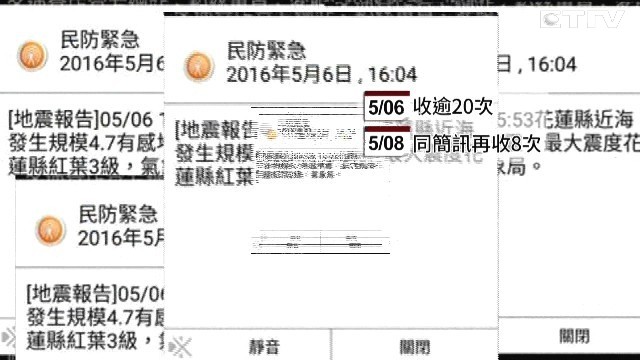 5月6日下午3點53分,在花蓮縣近海發生規模4.7的有感地震,最大震度花蓮縣的紅葉村達3級。但這封提醒民眾多加注意的簡訊,卻有人一收到了超過20多次,後來到了8日,地震都過了2天,還有人一天內收到8次該訊息。