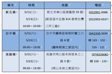 夏季用電的高峰期即將來臨,消費者千方百計想省荷包,台灣三洋為回饋民眾,將於5月11日至13日在新北市,21日至22日在台中、高雄,舉辦台灣三洋夏季家電福利品特賣會,好康家電驚喜價3折起,多款熱門商品限時、限量搶購!