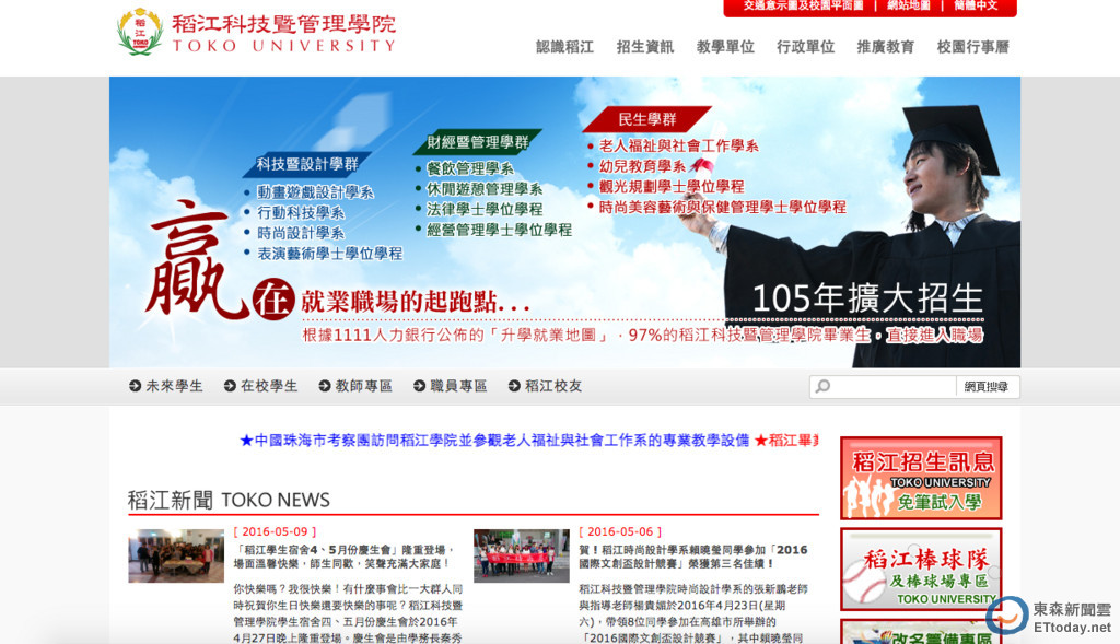 ▲稻江暨管理學院首頁。(圖/翻攝自學校網站)