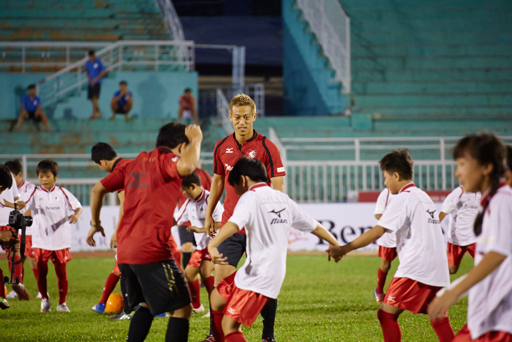 ▲本田圭佑足球營行之有年。(雅慕斯娛樂提供)