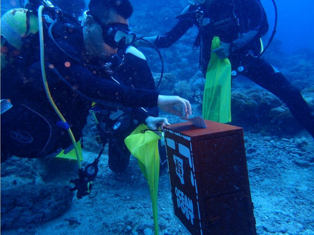 綠島在地商家「大哥ㄉ故事」老闆陳盈明11日在綠島石朗浮潛區海底13公尺處設立了一個海底郵筒,不僅可以寄明信片,還可以收垃圾。陳盈明指出,這個海底郵筒可以讓潛水客投遞明信片,因為設置點在沙地上,所以不會危害珊瑚,明信片採防水設計,而且每2天就會有「海底郵差」去收信跟收垃圾。