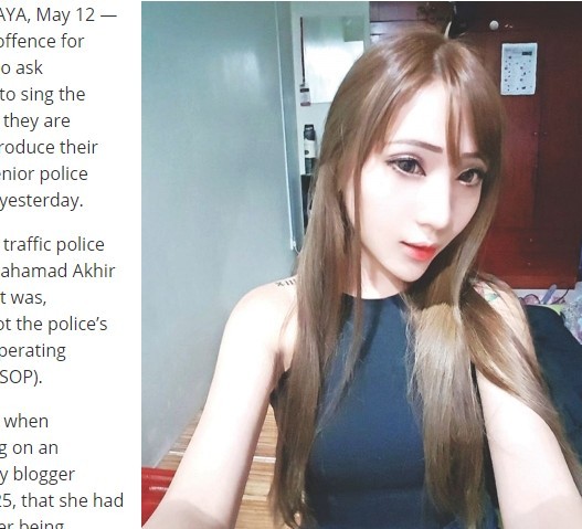 馬來西亞1名25歲正妹Raine Lee近日申訴,日前遇到警方臨檢,被要求繳納證件,但因身分證遺失,只好繳交駕駛證,但警方卻以駕照大頭照與本人不符為理由,要求她當場唱出馬來西亞國歌以示證明,最後只好唱了一小段,警方才同意放行。