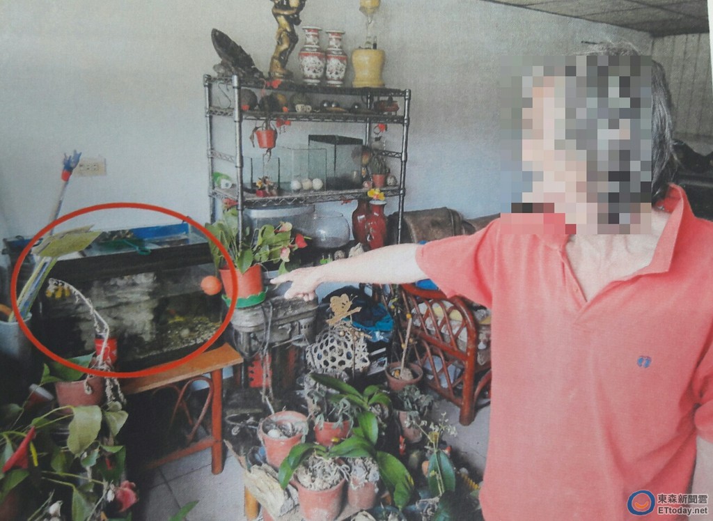 ▲員警在吳姓男子家中,找到失竊的孔雀魚和魚缸。(圖/記者楊佩琪翻攝)