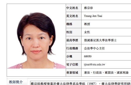 ▲台大法律系教授蔡宗珍出任考選部長。(圖/翻攝自國立台灣大學法律學院官網)