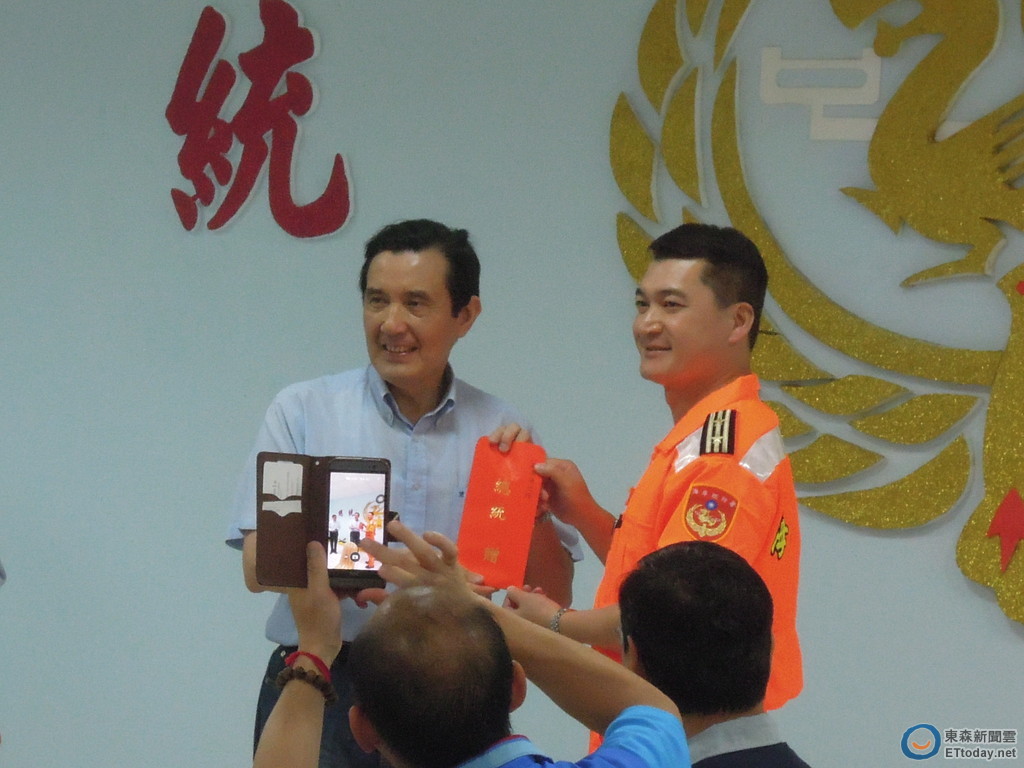 隨後馬英九到宜蘭縣頭城鎮 慰訪海巡署岸巡第一二大隊同仁,並共同用餐,他致詞時表示,上任有釣魚台,卸任前有沖之鳥礁,也算是貫通了,他也特地替海巡人員打氣,表示捍衛海疆是一個沒完沒了的事情,但要持續努力。