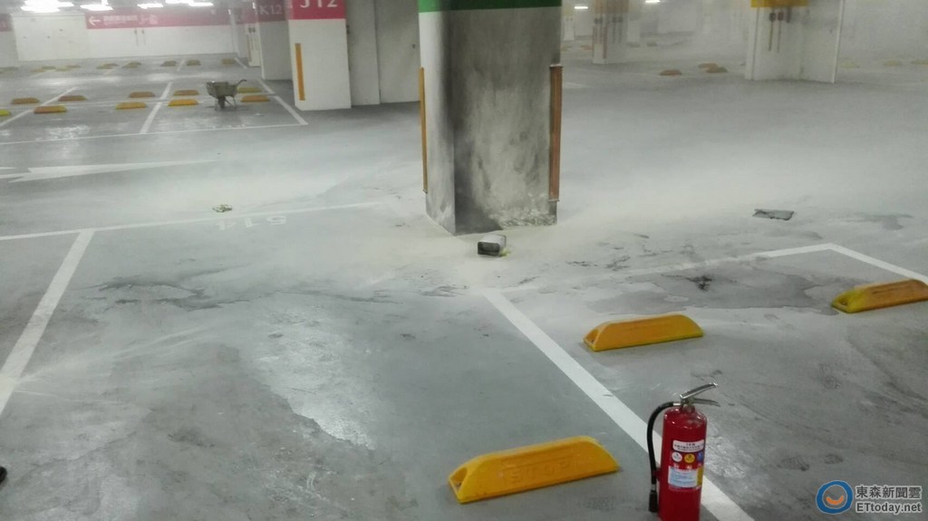 民眾向《ETtoday新聞雲》記者表示,13日下午高雄草衙道地下室J12區域的車位,發生火警,疑似是因為廠商施工不慎,引燃甲苯,導致現場出現火苗,現場人員立即將火勢撲滅。從照片中可以看見,綠色J12區域的停車位,佈滿滅火器的白色粉末,範圍甚至波及到紅色J12的柱子處,範圍不小。