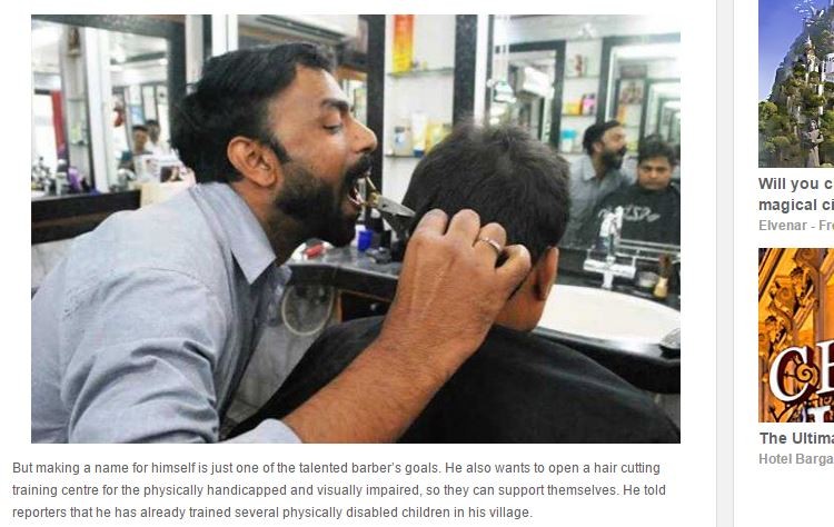 來自印度瓦拉納西的理髮師安薩爾•艾哈邁德(Ansar Ahmad),最近因為用嘴叼剪刀為客人理髮而爆紅。還有顧客慕名他的「好嘴藝」而來,專門排隊讓他理髮。而在受到大家關注後,安薩爾表示他要挑戰連續25小時用嘴叼剪刀理髮,並且希望在金氏世界紀錄中留下他的名字。