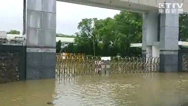 清晨的傾盆大雨造成北台灣多處積水,桃園八德廣興路和長興路目前淹水狀況仍嚴重,楊梅區豐富南路地下道也成水池,造成車輛熄火、進退不得,駕駛和妻子爬上車頂求救,消防人員出動橡皮艇將2人救出。