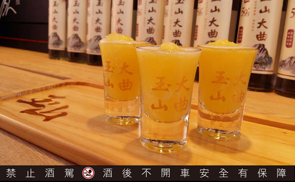 一般人都覺得高粱酒適合天冷時飲用,但因為玉山大曲精選酒頭,酒質乾淨,放在冷凍庫喝起來更順口。另外,玉山大曲帶點鳳梨、梅醬香的風味,加在酸甜的水果冰沙,更能提升酒香與果香的雙重享受!
