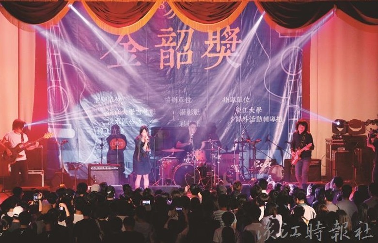 吉他社年度盛事「第28屆金韶獎」6日在活動中心展開激烈決賽,現場湧入逾千位的同學觀賽,並首次在網路上全程直播。各路歌唱好手卯足全力,在臺上認真演出。