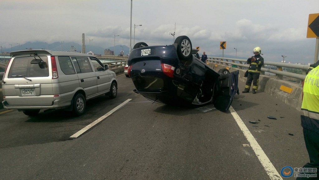 台64線快速道路五股區台64線板橋往五股方向17.8公里處,18日下午14點54分許發生一起自小客車疑因車速過快,自撞護欄翻成四輪朝天意外,所幸年20多歲男性駕駛被出時,僅肢體擦傷,意識清醒被送往亞東醫院救治,現場正由警方處理中。