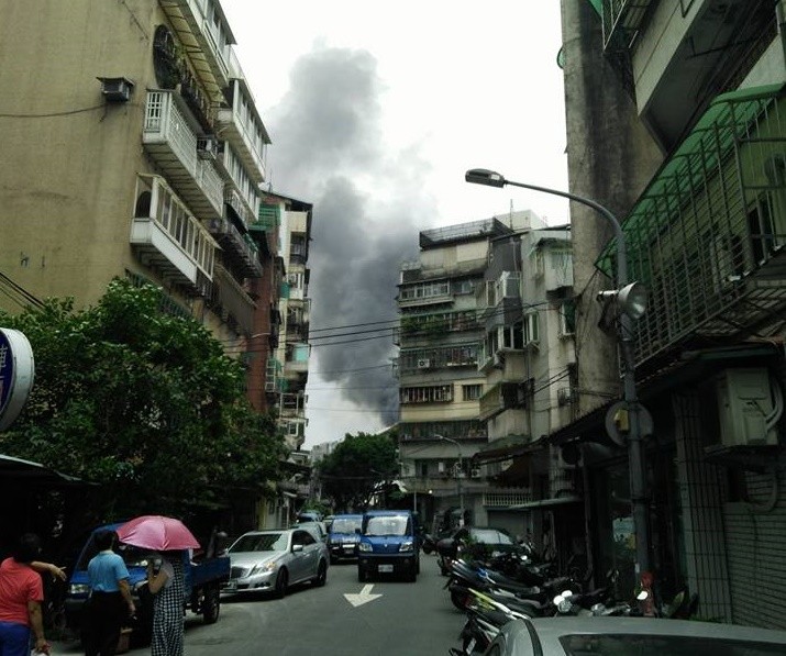 ▲松山機場旁的汽修廠大火,濃煙直竄天際。(圖/翻攝自爆廢公社)