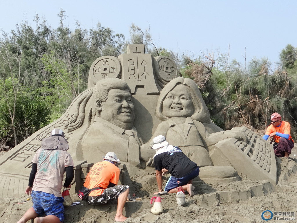 台灣第一位女總統蔡英文,即將於520正式就職!由於「九二共識」認知不同,兩岸正面臨緊張關係,交通部觀光局雲嘉南濱海國家風景區管理處主辦的「2016一見雙雕藝術季」,特別以兩岸蔡習會為主題,打造「英」雄「習」英雄沙雕作品,於19日搶先在「馬沙溝濱海遊憩區」登場,立刻成為眾人矚目焦點!