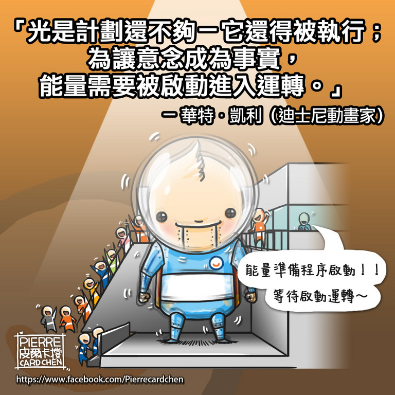 「光是計劃還不夠-它還得被執行;為讓意念成為事實,能量需要被啟動進入運轉。」- 華特.凱利(迪士尼動畫家)