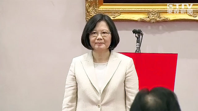 準總統蔡英文20日宣誓就職,在總統府經國廳中,約在9點09分左右,蔡英文自立法院院長蘇嘉全手中依序接下印信,並宣誓儀式完成,正式就任。但其中卻有一段小插曲,司儀在喊「奏樂」時突破音,不僅讓在場人士笑了,連表情嚴肅的蔡英文也面露尷尬,似乎在憋笑。