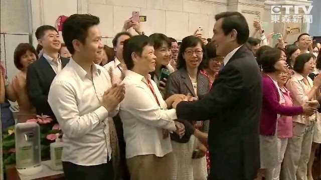 ▲馬英九離開總統府,員工列隊歡送,阿卿嫂也在其中。