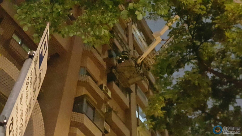 ▲北市男子與家人爭執後,負氣從家中7樓跳下,幸運上在6樓未受傷,當警消前往救援時竟還與消僵持50分鐘才願搭雲梯車下來。(圖/記者孫曜樟翻攝)