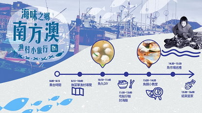 漁村導覽、魚丸DIY、品嚐討海飯、魚類小教室、魚市場巡禮