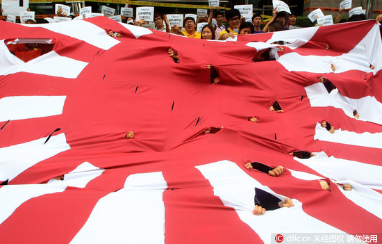 旭日旗是帶有紅日和旭日光芒圖案的一種旗幟,日本在二次世界大戰期間曾侵略過的地區,如中國、朝鮮等,被視為帶有冒犯性。據報導,旭日旗象徵日本軍國主義,日軍掛著此旗幟在戰爭受害國韓國的海域上進行演習不妥;而韓國民間正展開抵制「戰犯旗」的運動,希望政府可以阻止日本軍艦進入港。