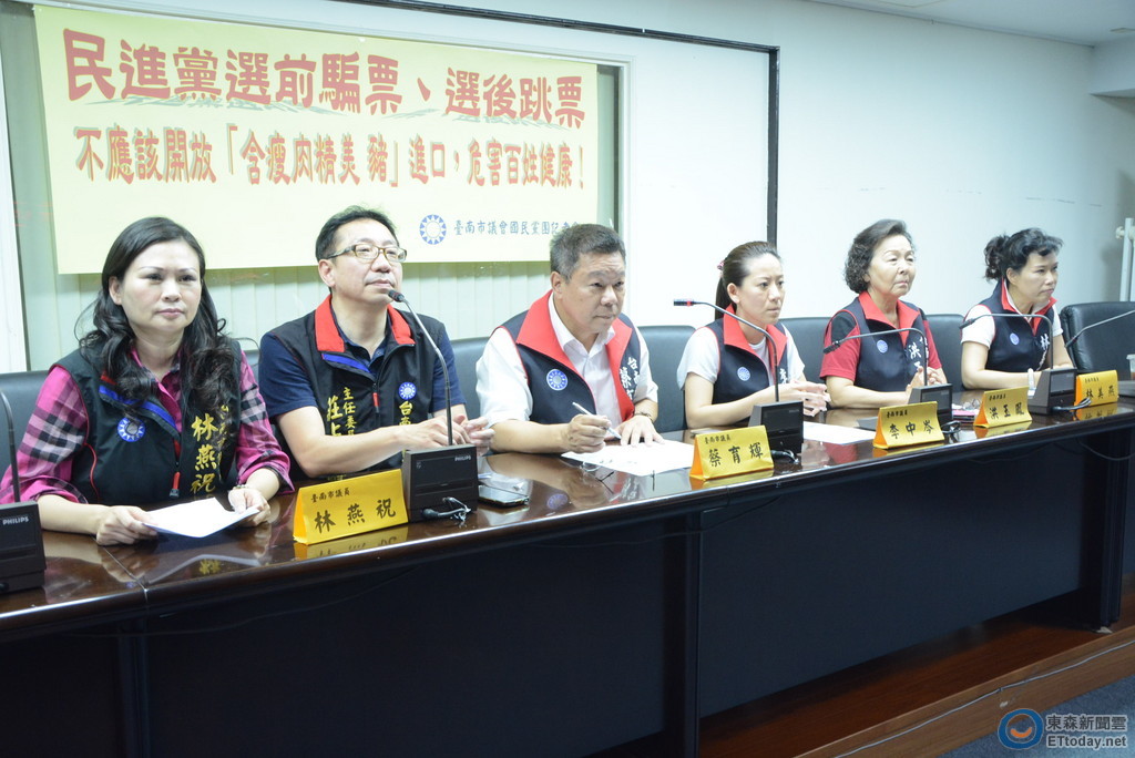 ▲ 台南市議會國民黨團痛批民進黨選前騙票、選後跳票,不應該開放「含瘦肉精美豬」進口危害百姓健康。(圖/記者林悅攝)