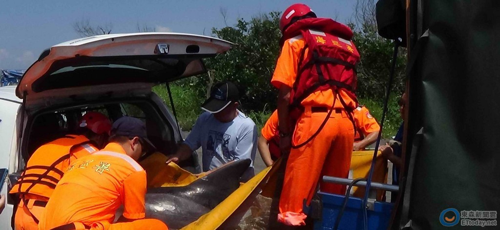海巡署東港村安檢所人員昨天執行灘岸巡查任務時,在蘭陽溪出海口前方沙灘執發現一隻擱淺的鯨豚,當下通報農業處畜產科和中華鯨豚協會協助,為了避免鯨豚氣孔遭堵塞,先將牠的呼吸孔朝上、並且潑海水保濕,再挖沙坑和防水布,希望能夠減輕器官遭壓迫,提高存活率,再請附近民眾別靠近,減低噪音,怕牠太緊張。