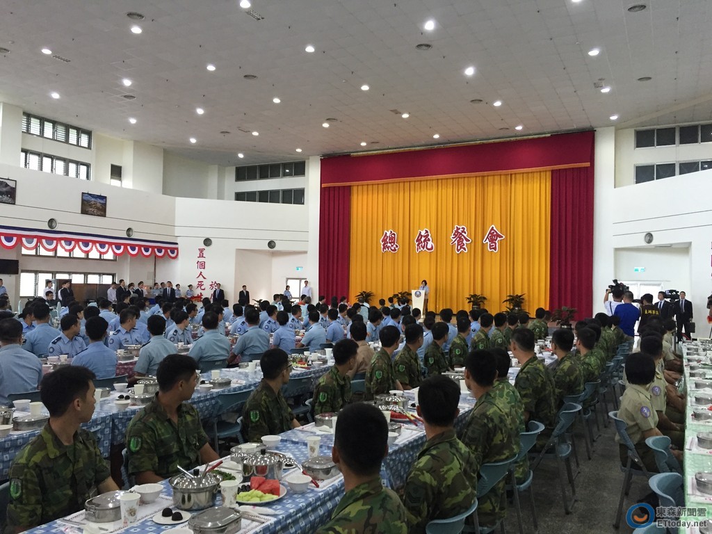 據了解,中午與蔡英文共進午餐之單位及人數, 空軍教準部、401聯隊、東部作戰管制中心、花防部、憲兵11中隊等單位官、士、兵合計244員。席間蔡英文有詢問官兵伙食、住宿是否習慣,甚至有同桌的官兵主動請總統簽名。