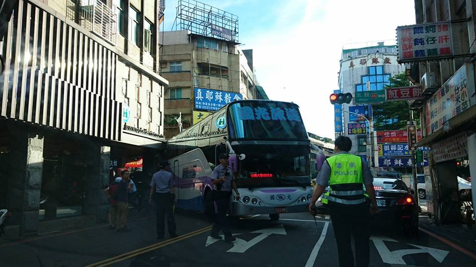 據了解,這起客運撞招牌的地點位於新北市新莊區新泰路與公園路口的交叉口,該路段道路狹隘,更是上新莊與下新莊連結的主要幹道,平時也會有諸多公車行經,該路段原本車流量就已經難以疏通,更鄰近塞車情況嚴重的中正路,今日發生大客車卡在路口的意外,也讓整個交通大亂。