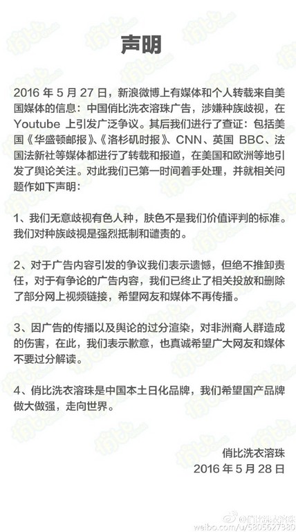 ▼雷尚化妝品道歉聲明稿。(圖/翻攝俏比洗衣溶珠微博)