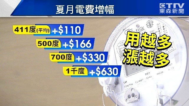 實際算一算,如果以每一戶夏季平均用電量411度來計算,夏月電費會多110元,用電如果高達700度,則得多花330元,1千度的用電大戶,更是得多付630元。也就是說用越多漲越凶,做生意的更加苦哈哈。