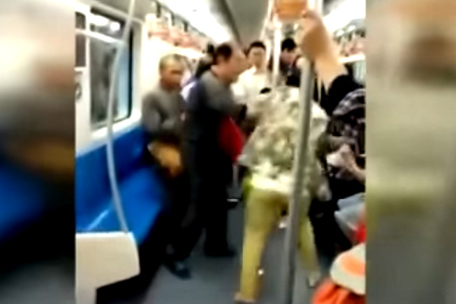 中國網路近日流傳一段上海地鐵影片,片中一名比丘在車廂內與一名大媽發生激烈口角,甚至拳打腳踢,比丘在衝突中甚至起一記飛腳攻擊,而對方也不甘勢弱脫下鞋子回擊,場面激烈令車廂內的民眾當場傻眼。
