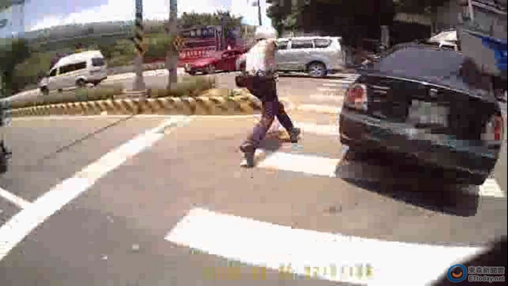 ▲新莊今日正午爆發警匪街頭追逐戰,警遭衝撞奮勇持棍擊碎駕駛座玻璃窗,為免傷無辜仍先讓其脫逃。(圖/記者孫曜樟翻攝)