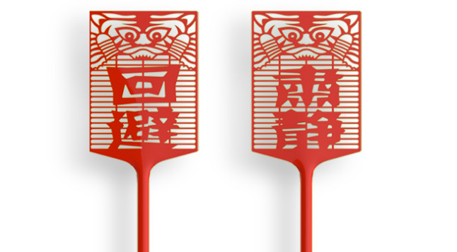 有網友在臉書上分享一張圖片,內容是一對仿「執事牌」的蒼蠅拍,分別寫著「肅靜」和「迴避」,特殊造型讓網友笑說,「實在太酷了!」另外,上面還畫有「虎頭」,讓網友們討論說,「是想諷刺只敢拍蒼蠅,不敢打老虎嗎?」有人則搞笑回說,因為這是拿來打「虎神」(音近台語的蒼蠅)用的。