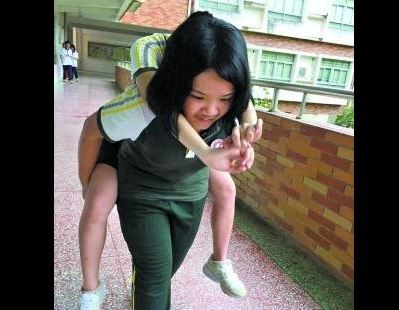 廣東東莞女孩蔡綺程10年前就讀小學時,看見班上身患小兒麻痺症的同學小婷行動不便,從此便主動陪伴在她身邊,當她的「拐杖」,從小學到高中的這10年,蔡綺程總是跟小婷考進同一學校,還申請要和她同個班級,近日被評為2016年廣東省「最美南粵少年」。