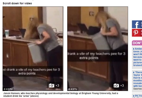 ▲美國楊百翰大學一名教授提幫學生成績加分,方式是「喝尿」。(圖/翻攝自每日郵報)