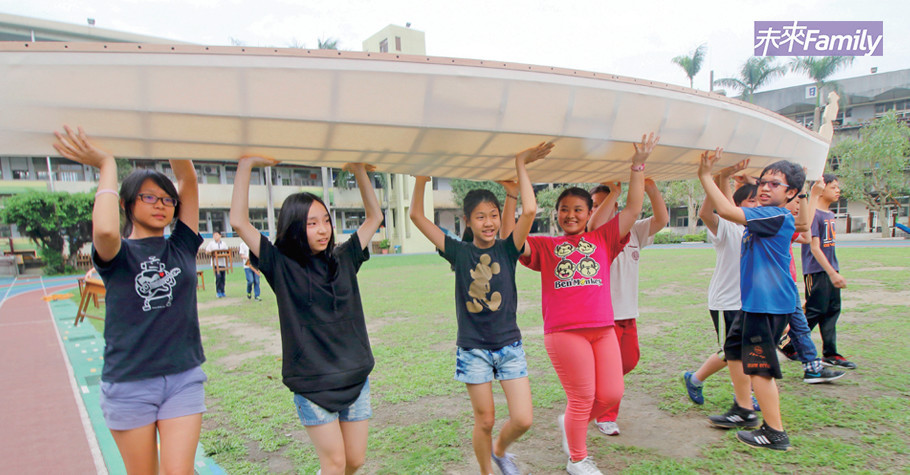 例如造舟的難度較高,一開始,學生們不知道如何分工,但漸漸的,孩子發現各自在行的領域,有的人擅長鋸木頭,有的很會釘釘子,有的對色彩很敏感、能夠設計,有人雖然手作不好,但是國文造詣高,可以幫船取名字。
